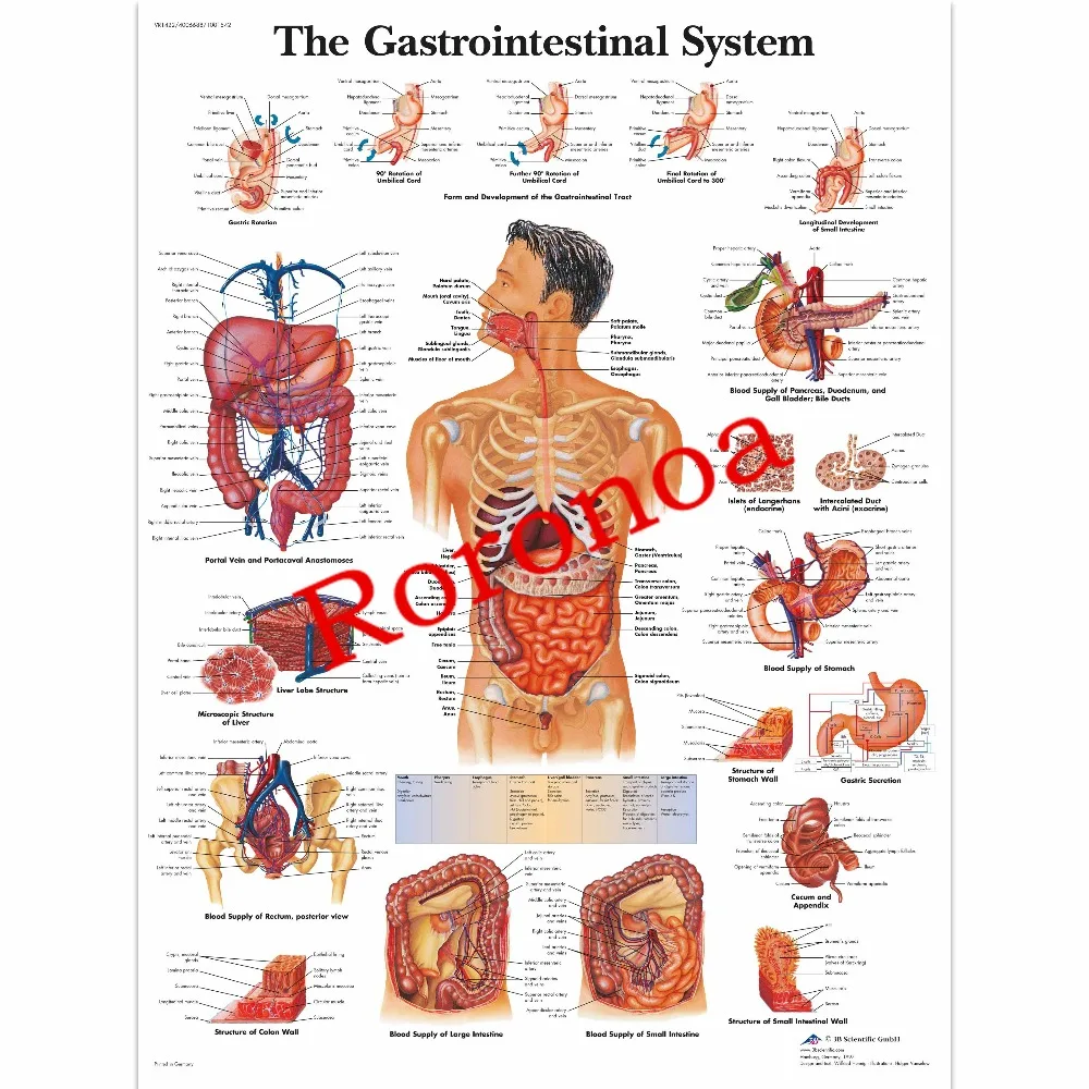 Vintage "The Gastrointestinal System Chart" Posters Kraft Paper Painting Wall Sticker Print Art Hospital Interior Decoration